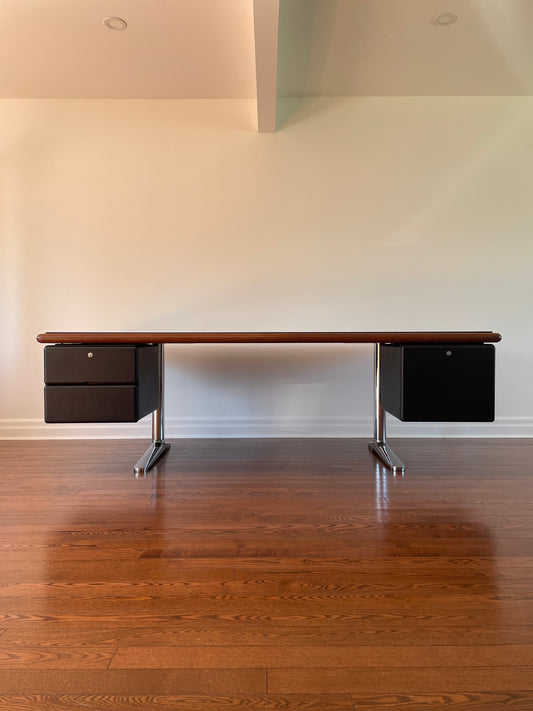 Warren Platner for Knoll Executive Desk in Leather & Cherry