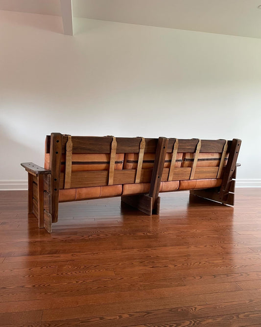 Venezuelan Patchwork Leather & Walnut Sofa