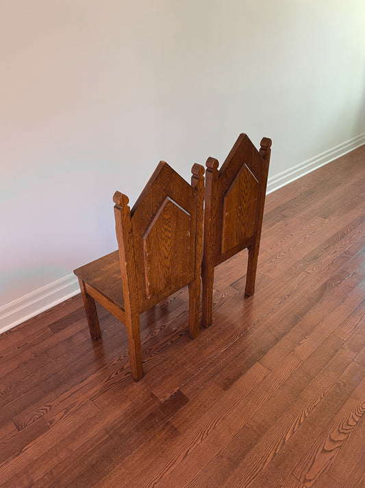 Sold outOak Cathedral Head Chairs