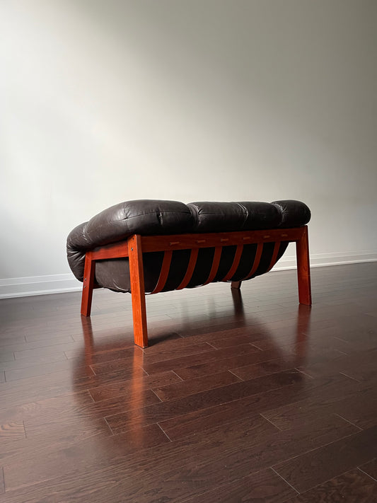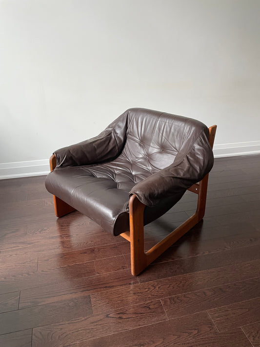 Vintage Interna Teak & Leather Lounge Chair with Ottoman