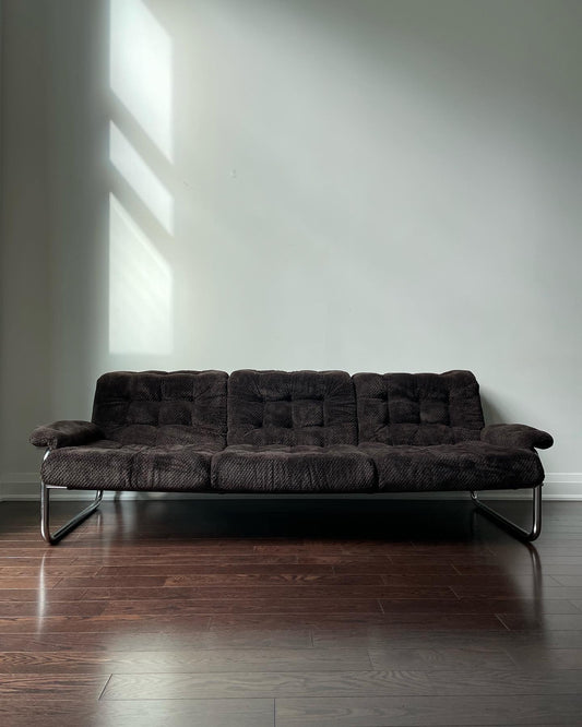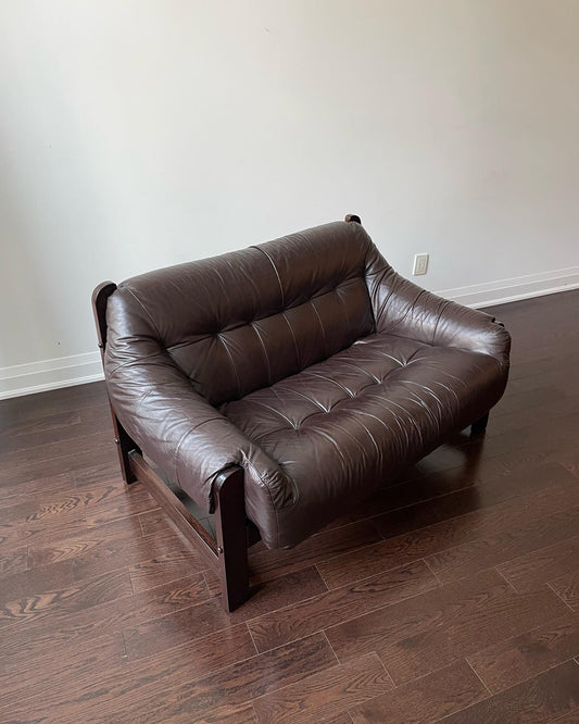 Moveis Corazza Deep Brown Leather & Rosewood Loveseat