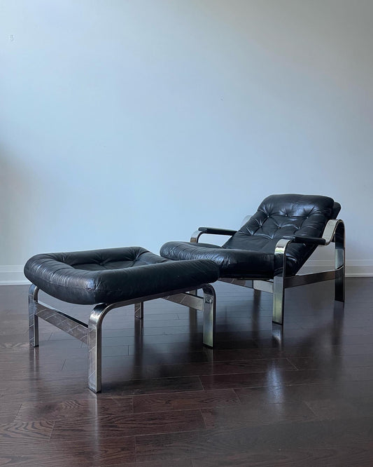 Selig Chrome Reclining Lounge Chair with Ottoman