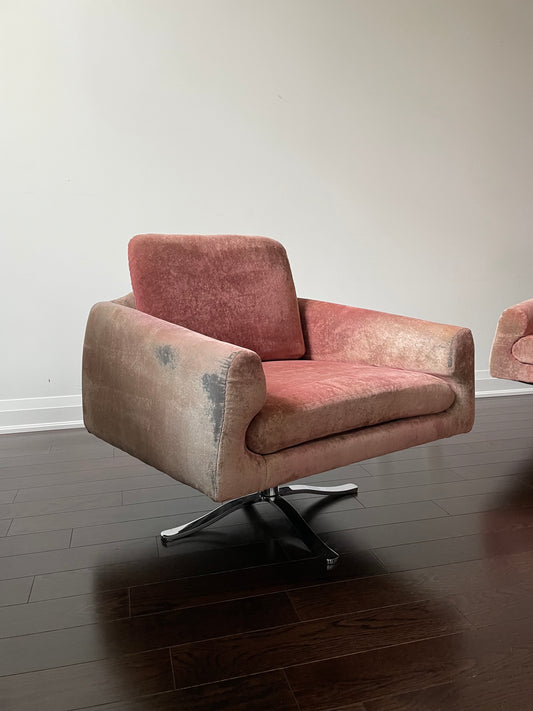 Sold outR. Huber Pink Velvet Swivel Chairs