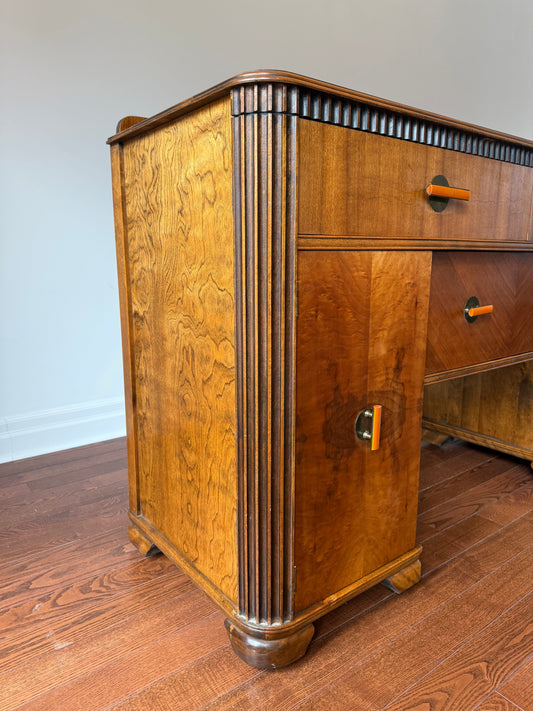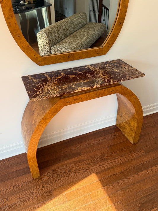Art Deco Burl Wood Console Table & Mirror