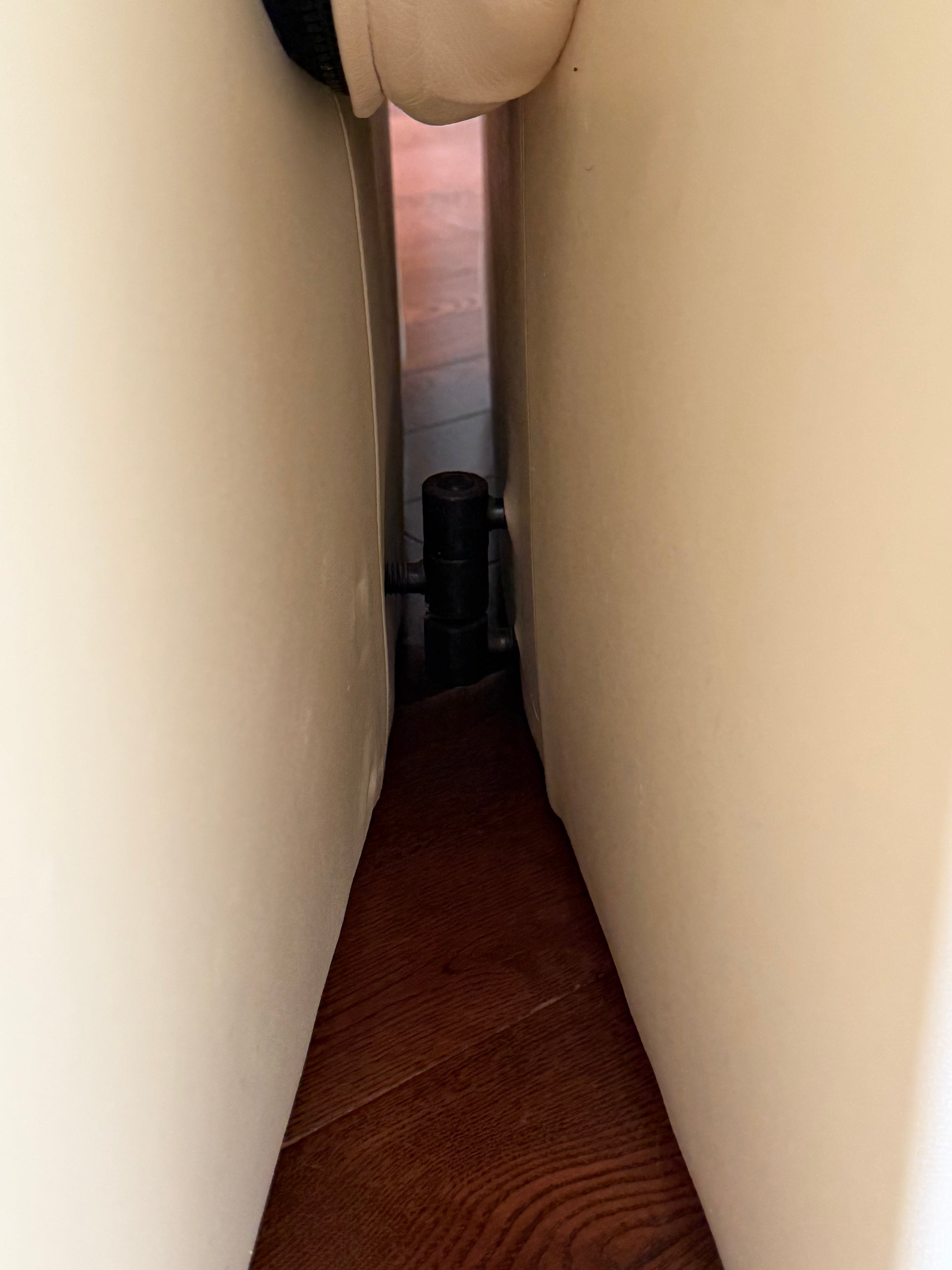 - Small patch and fill on the backrest of one of the elements. Negligible from afar.