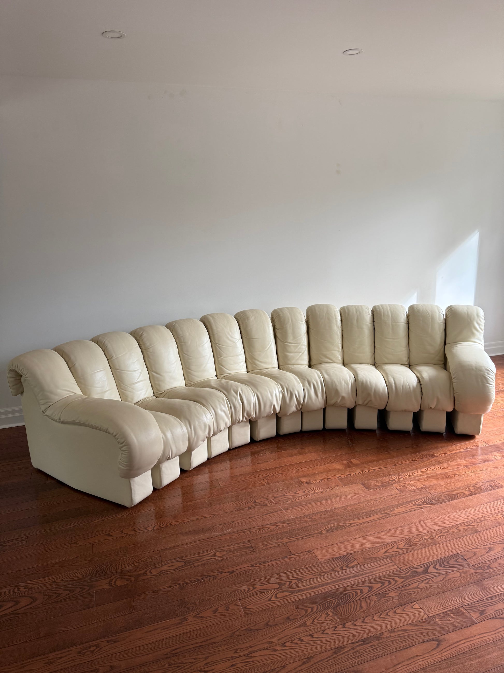 Design care of Ueli Berger, Eleanora Peduzzi-Riva & Hans Ulrich. One of Switzerland, de Sede's most iconic and sought after designs. This set is an early example of the DS-600 having been manufactured in Switzerland rather than the USA like some of the more recent vintage examples branding the Stendig tag. Dubbed the "Non Stop" for its ability to perpetually accept new elements. Otherwise, often referred to as the "Snake Sofa".